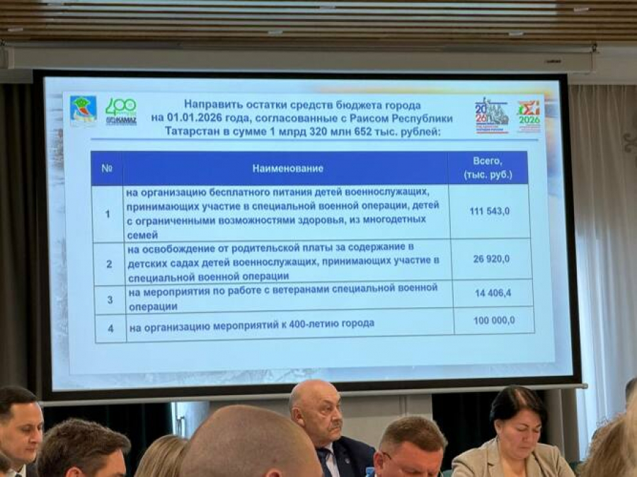 На организацию мероприятий к 400-летию Набережных Челнов дополнительно направили 100 млн рублей из остатков средств, которые образовались в бюджете города на начало 2026 года. Решение о внесение изменений в городской бюджет на 2026-й год утвердили сегодня на пятом заседании нового созыва горсовета.