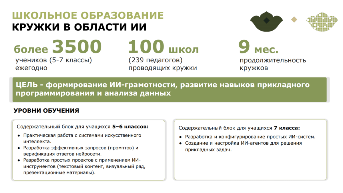Повышать квалификацию 623 учителей информатики будут в августе этого года, а 39 лучших из них пройдут отбор, чтобы вести те самые ИИ-кружки для школьников.