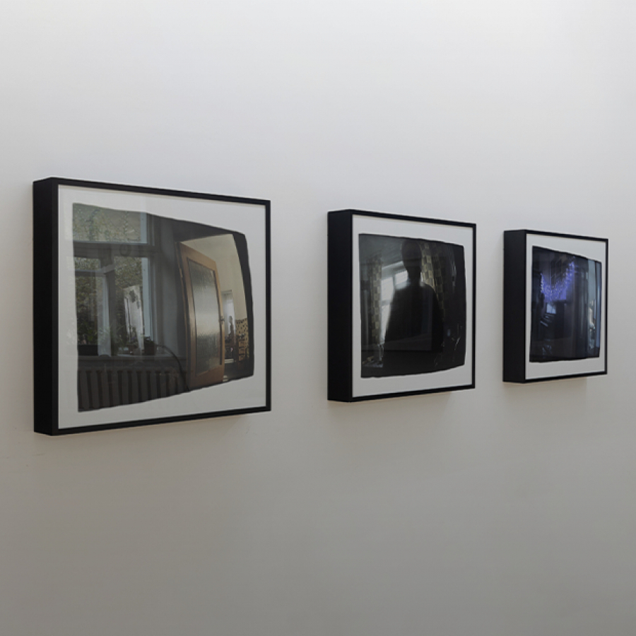 Елена: Получилось, что на выставке есть несколько работ, которые мы делали в России, что логично для этой выставки. Вообще, выставка названа как серия работ 2013-го года, которая тоже идёт от нашей личной истории. Мы жили в доме, там у нас была мастерская и сад, а потом нам сообщили, что его будут сносить. Сейчас по центру нашего дома идёт улица Рыскулова. И нам захотелось сделать что-то о том времени, которое мы провели в этом доме, лет десять, не меньше. Мы взяли телевизор, такой старый, немного с выпуклым экраном, и стали возить его по интерьеру и снимать отражение, которое там было. Получился какой-то двойной смысл, ведь фантомы, которые там появляются, и телевизор — тоже неотъемлемая часть интерьера советского человека.