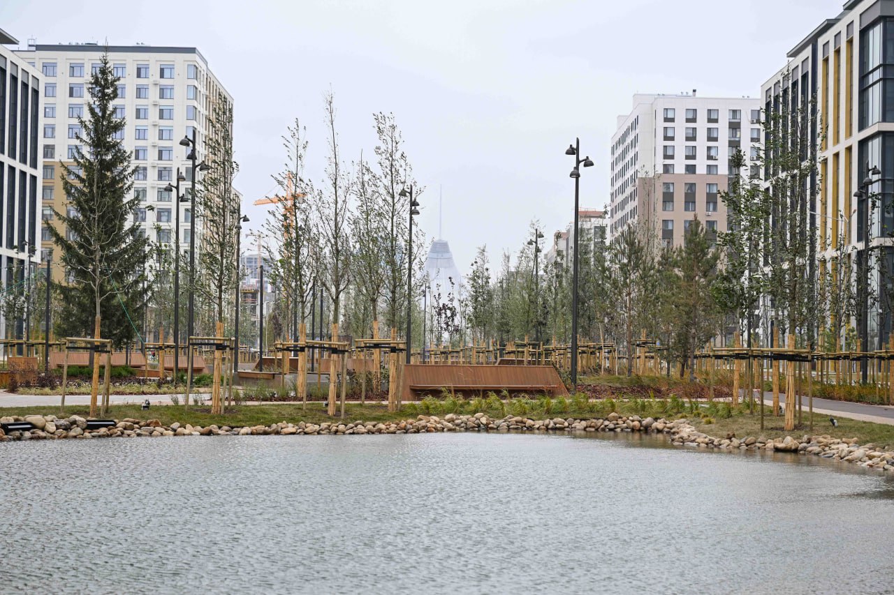 Первый этап работ , охвативший территорию 3,8 гектара, завершен. Проект включает пешеходные и велосипедные дорожки, архитектурные элементы и искусственные пруды.