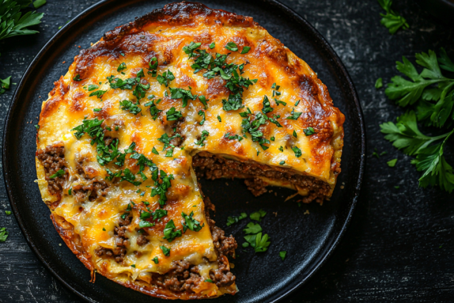 Пока духовка разогревается, вы успеваете обжарить фарш и смешать соус. Сборка занимает 5 минут. И через полчаса у вас на столе огромный, дымящийся, соблазнительно пахнущий пирог, который накормит целую компанию.