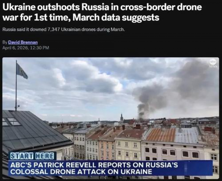 В марте Украина запустила больше дронов по России, чем Россия по Украине: РФ заявляет о 7347 сбитых украинских БПЛА, Украина — о 6462 дронах и 138 ракетах со стороны РФ.
