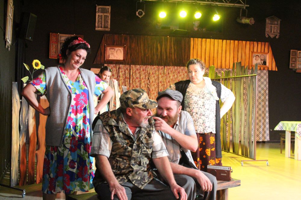 «Party по-деревенски» – так называется новый спектакль, которым Темиртауский театр для детей и юношества открыл свой 36-й сезон. Эта постановка адресована взрослой аудитории и предназначена для малого зала. Зрители будто подглядывают за тем, что происходит у их соседей, живущих через забор. А там кипят почти мексиканские страсти. Соседки Лида и Валя решили разнообразить свою скучную семейную жизнь и поменялись мужьями. Такая рокировка привела к череде курьёзных, романтических и лирических событий. Но когда вихрь эмоций утихает, герои понимают, что счастье рядом: оно в простом общении, в любви и в доме, где тебя ждут. – Вернувшись в августе из отпуска, мы начали подбирать пьесу для постановки. Проанализировали мнения зрителей и пришли к выводу, что люди хотят увидеть что-то лёгкое, душевное, лирическое, – рассказывает главный режиссёр Темиртауского театра для детей и юношества Олег Керимов. – Выбор пал на «Прибайкальскую кадриль» российского драматурга Владимира Гуркина. Знаете, раньше я ничего подобного не ставил, предпочитал что-то более серьёзное. Но мы решили попробовать и сделать народную комедию. С творчеством Владимира Гуркина многие знакомы благодаря советской кинокомедии «Любовь и голуби». Он автор сценария этой картины. Сюжеты у фильма и спектакля, конечно, разные, но есть в них нечто общее: деревенский антураж и юмор, понятный каждому. И смех сближает людей. – Когда работал над постановкой, не боялся, что зрителям будет несмешно. Даже об этом не думал, – продолжает Олег Керимов. – У нас вообще не было задачи специально рассмешить публику. Юмор индивидуален. Допустим, вы будете смеяться, а девушка рядом с вами – нет. Невозможно угадать ту самую шутку, которая придётся по вкусу всем. Зритель во время спектакля сам поймет, где ему смешно, а где грустно. Главные женские роли в «Party по-деревенски» сыграли Наталья Снегирева (Валя), а также Ольга Зверьева и Евгения Тес­ля-Ярцева (Лида). Образы их мужей воплотили Владимир Хомутов (Саня) и Валентин Бухонов (Николай). Художником-постановщиком спектакля стала Анна Трушкова, над световым оформлением работал Георгий Мурадов, над музыкальным – Надежда Гермес.