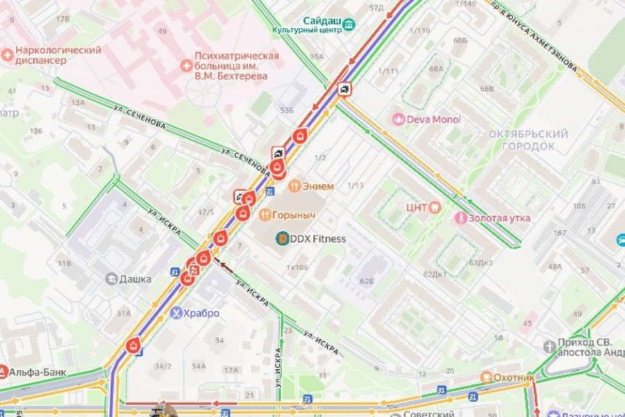 Движение трамваев маршрута №4 остановилось на улице улица Ершова в Казань из-за дорожно-транспортного происшествия.