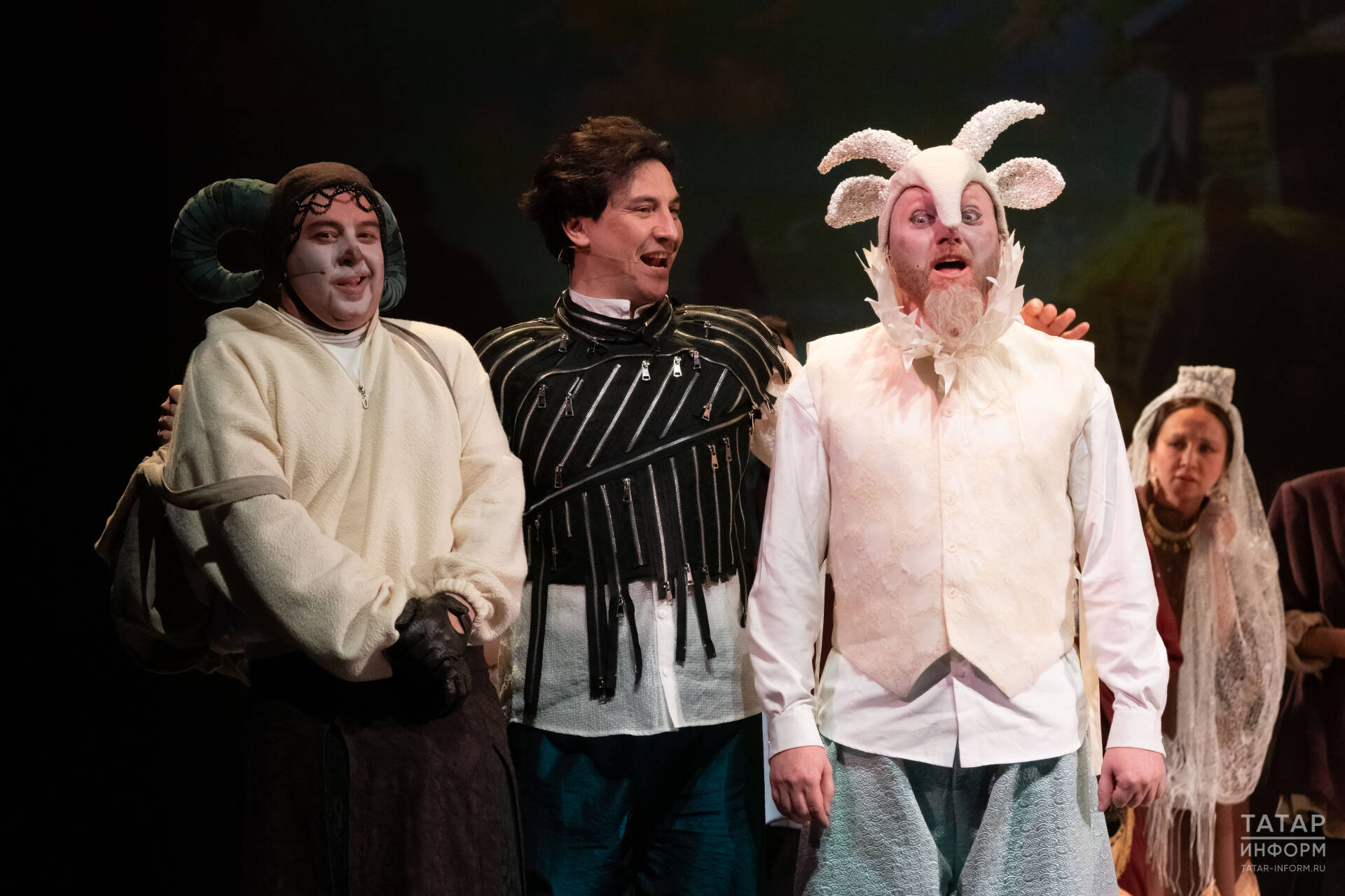 - Артистлар составы болайрак: Кәҗә — Илгиз Шәйхразиев, Сарык – Илгиз Мөхетдинов, Караәхмәт – Руслан Закиров, Кисекбаш – Алмаз Борһанов, Дию – Артур Шәйдуллин, Хуҗа – Денис Ханбаба, Су анасы – Татьяна Ефремова. Театр артистлары базар халкы дип аталган массовкада иде.